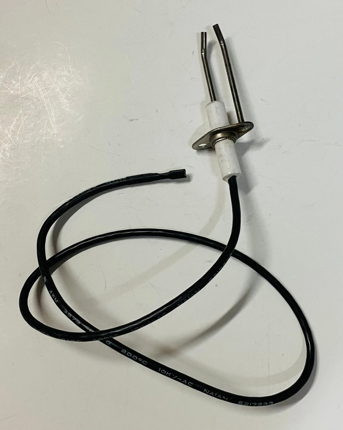 The PGS 25” Igniter Electrode gets plugged into the back of the spark generator. The metal tips at the end of the electrode need to be positioned by the burner to create the spark.