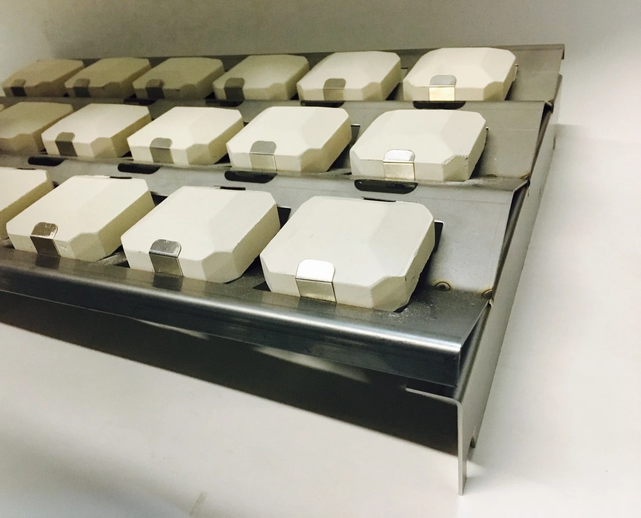 Complete tray assembly includes tray, clips and briquettes.